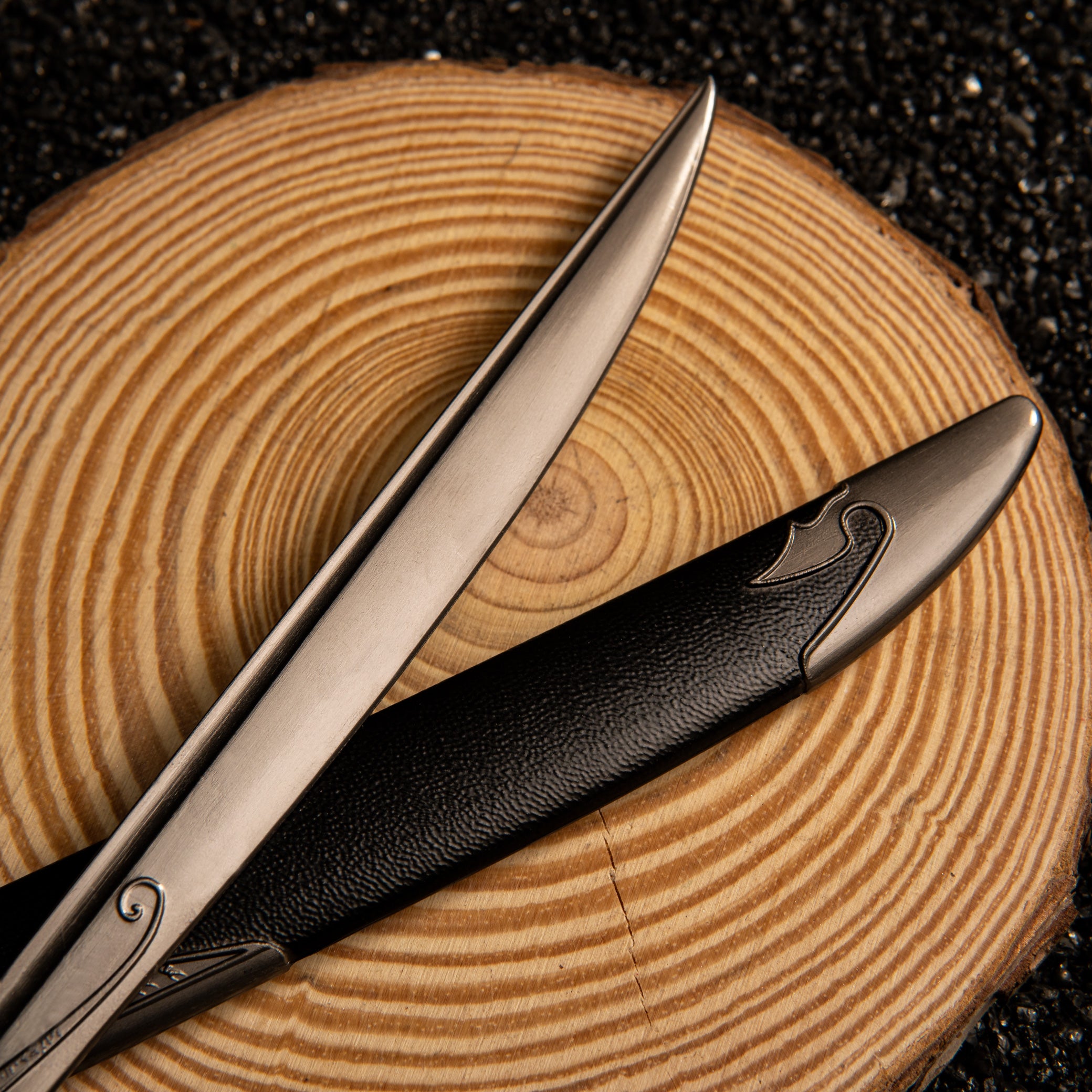The Dragon-Tooth Hilt: The handle isn't wrapped in leather. It’s sculpted to look like the tooth of a dragon, curved to fit the hand. Our replica reproduces this iconic shape with a textured, bone-like finish on the metal.