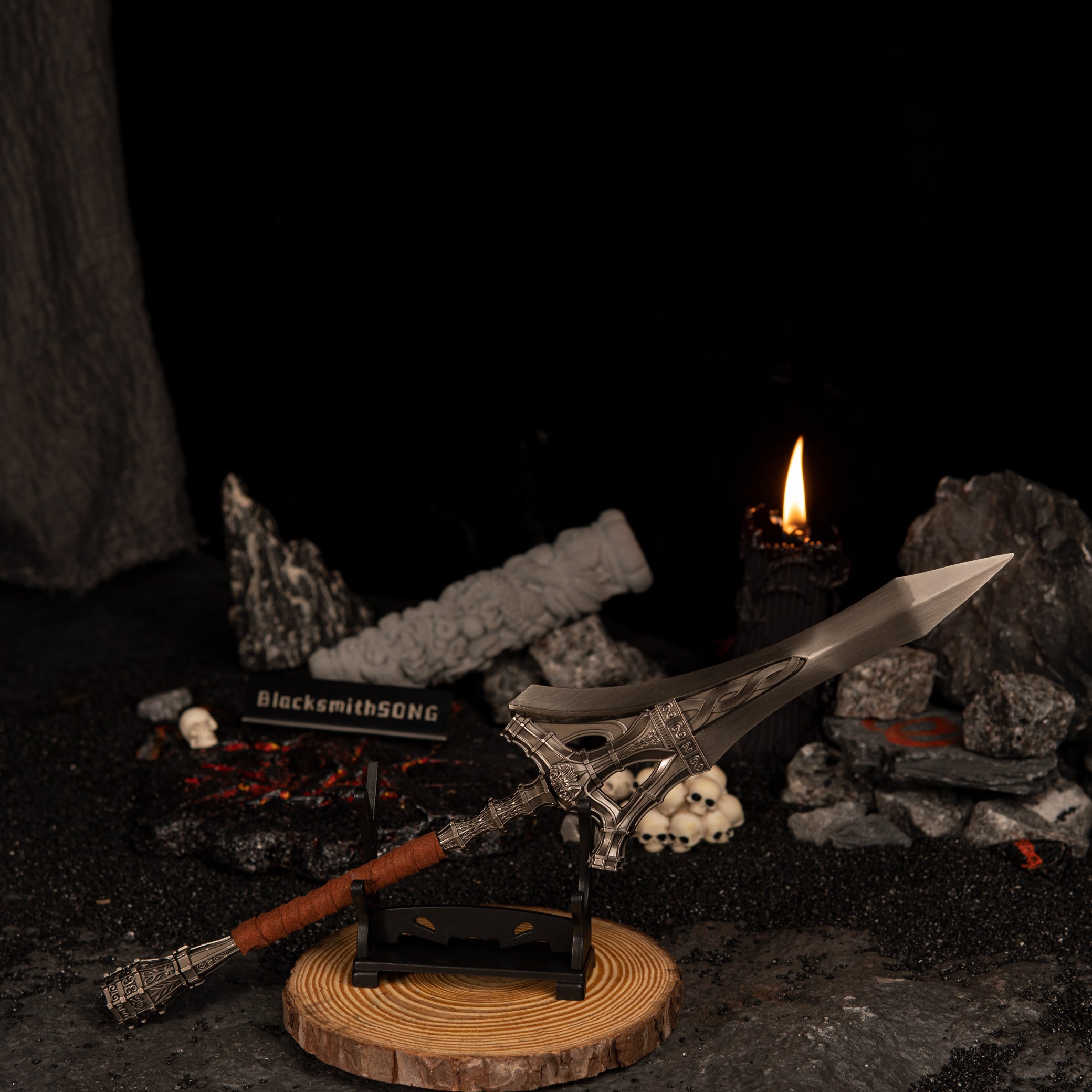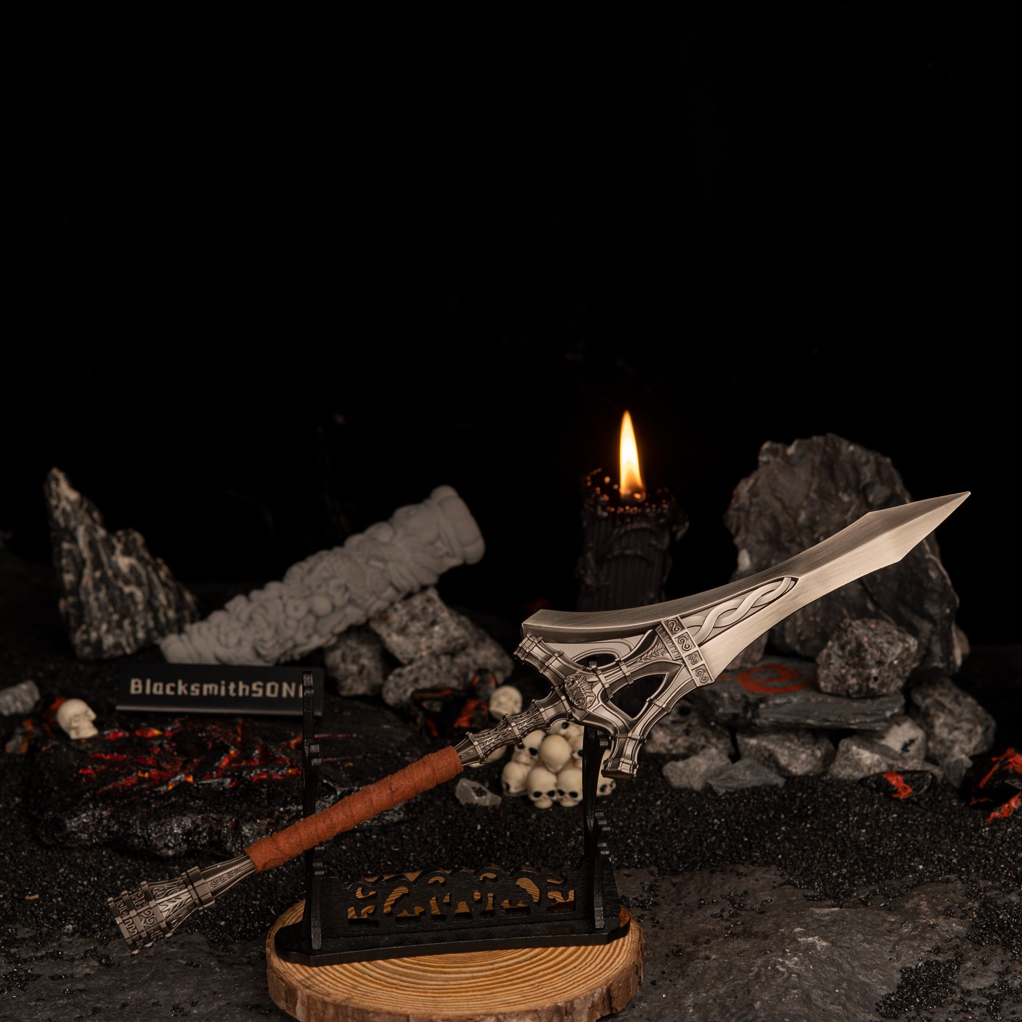 Examine the intricate area where the blade meets the shaft—impressive metalwork shows off interlacing details reminiscent of ancient weaponsmiths’ labor. The robust construction serves as a tribute to the original design in-game. Each facet is designed to evoke the sense of legacy, strength, and adventure. For fans, it’s an outstanding example of elden ring metal , meticulously crafted and finished.