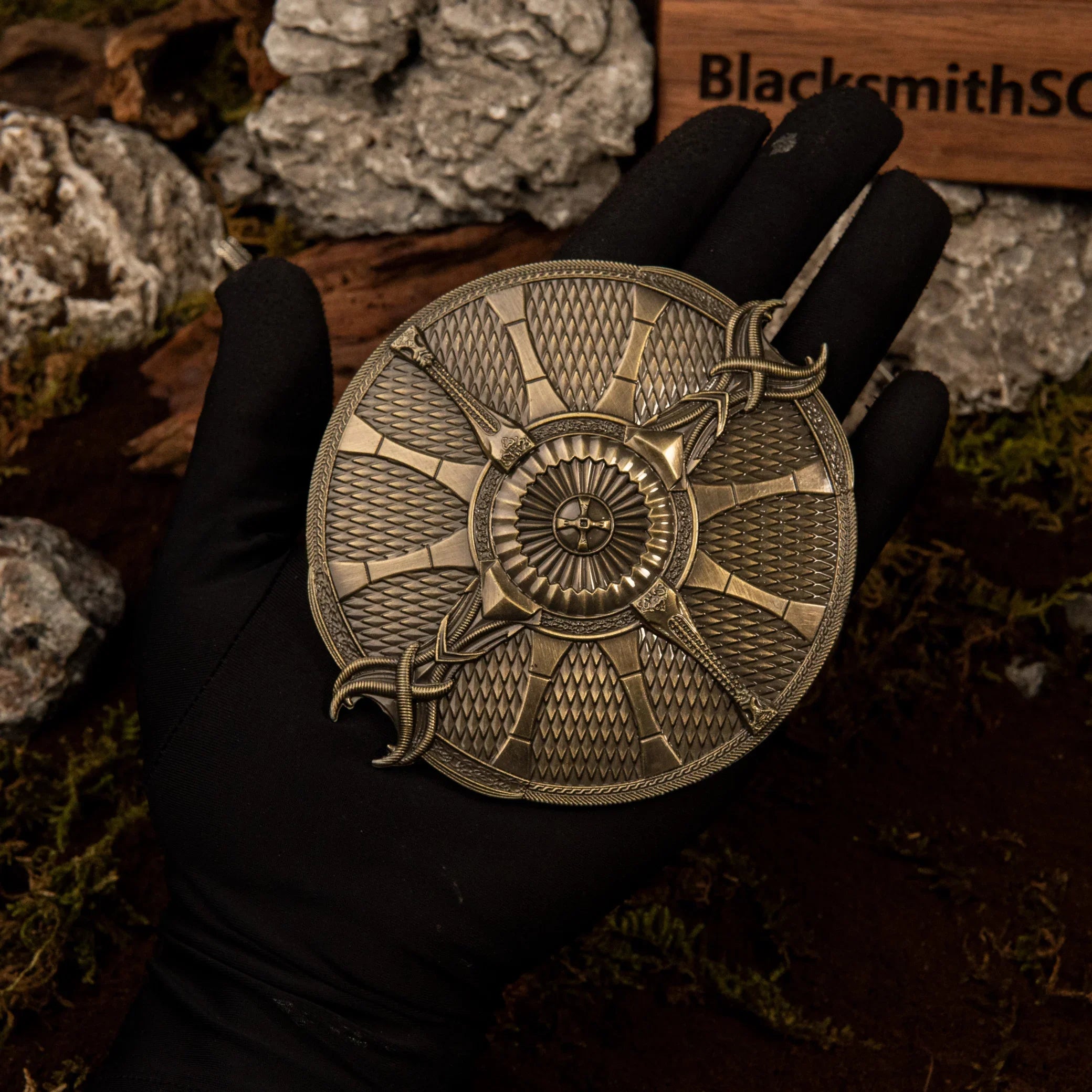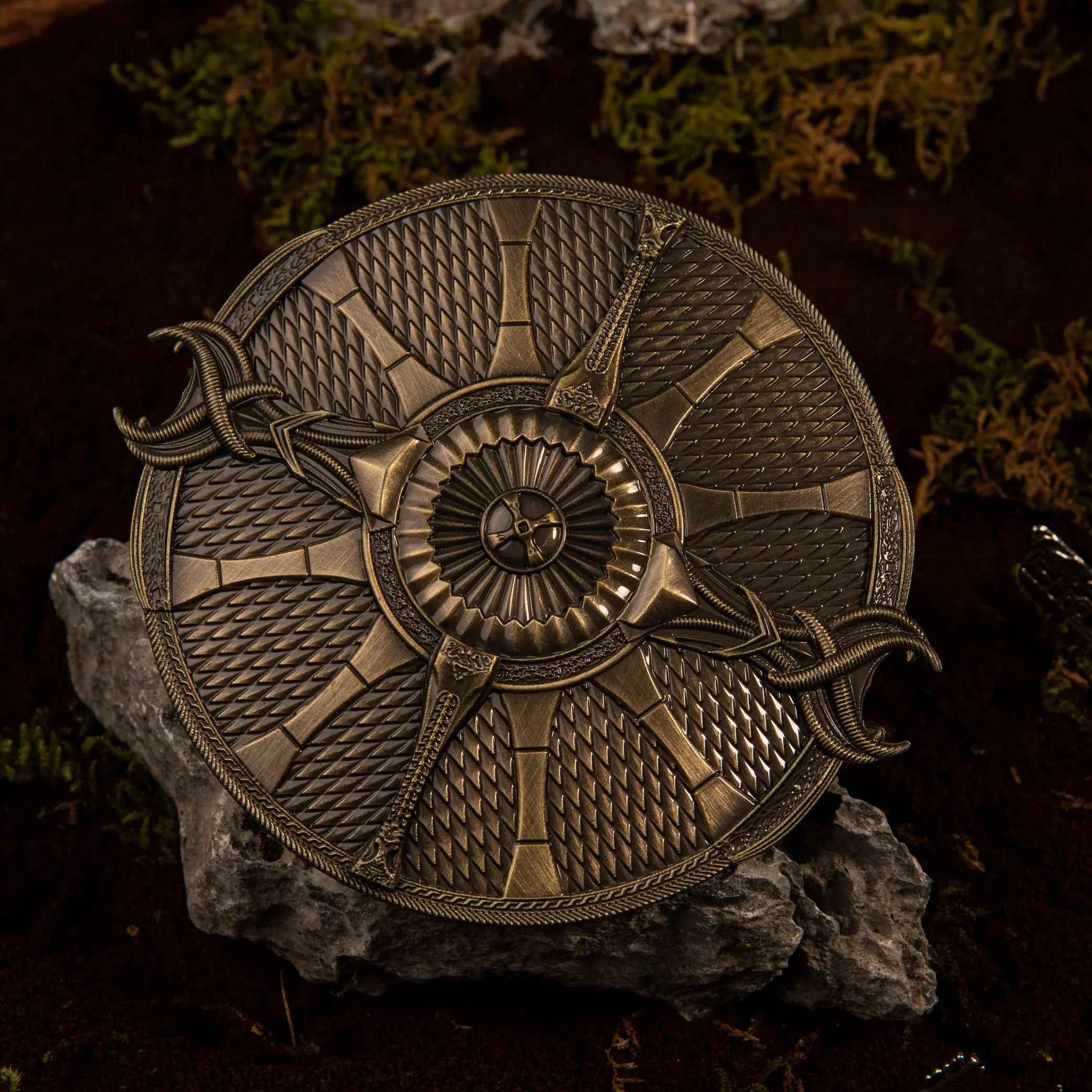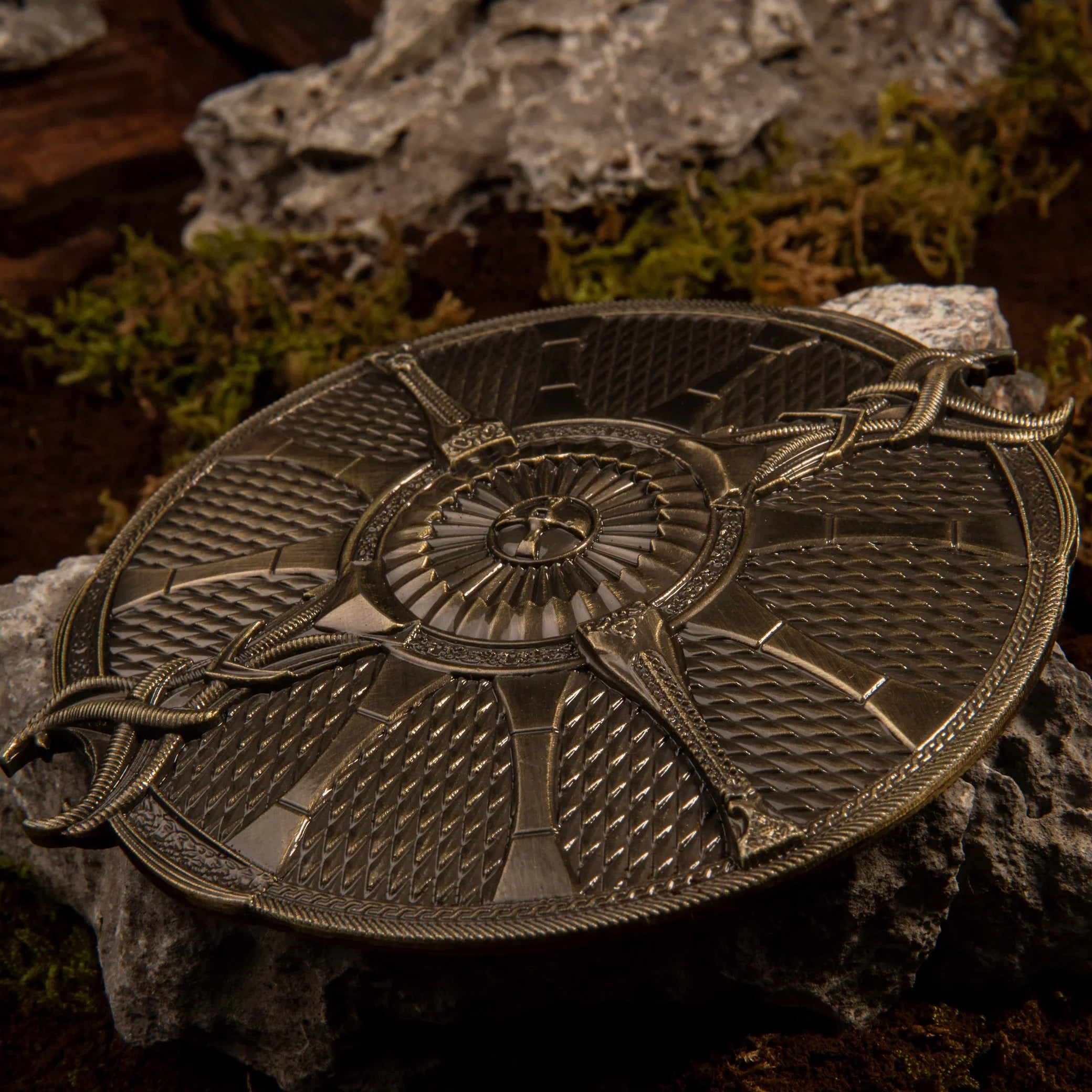 この公式にインスパイアされたシールドは、ゴッド・オブ・ウォーのクレイトスの象徴的な装備を細部まで再現しています。写真測量法でスキャンした 3D モデルを使用して、細部まで映画の正確さを保ちました。