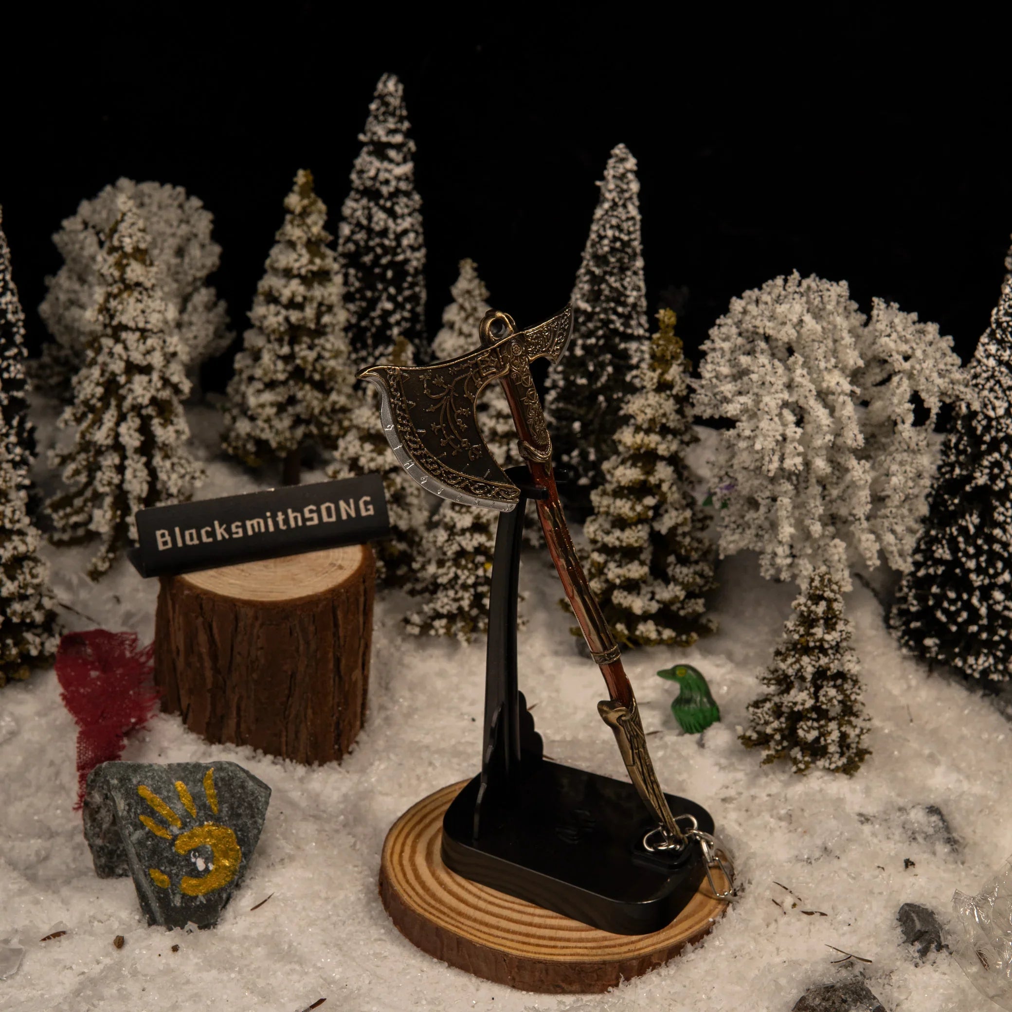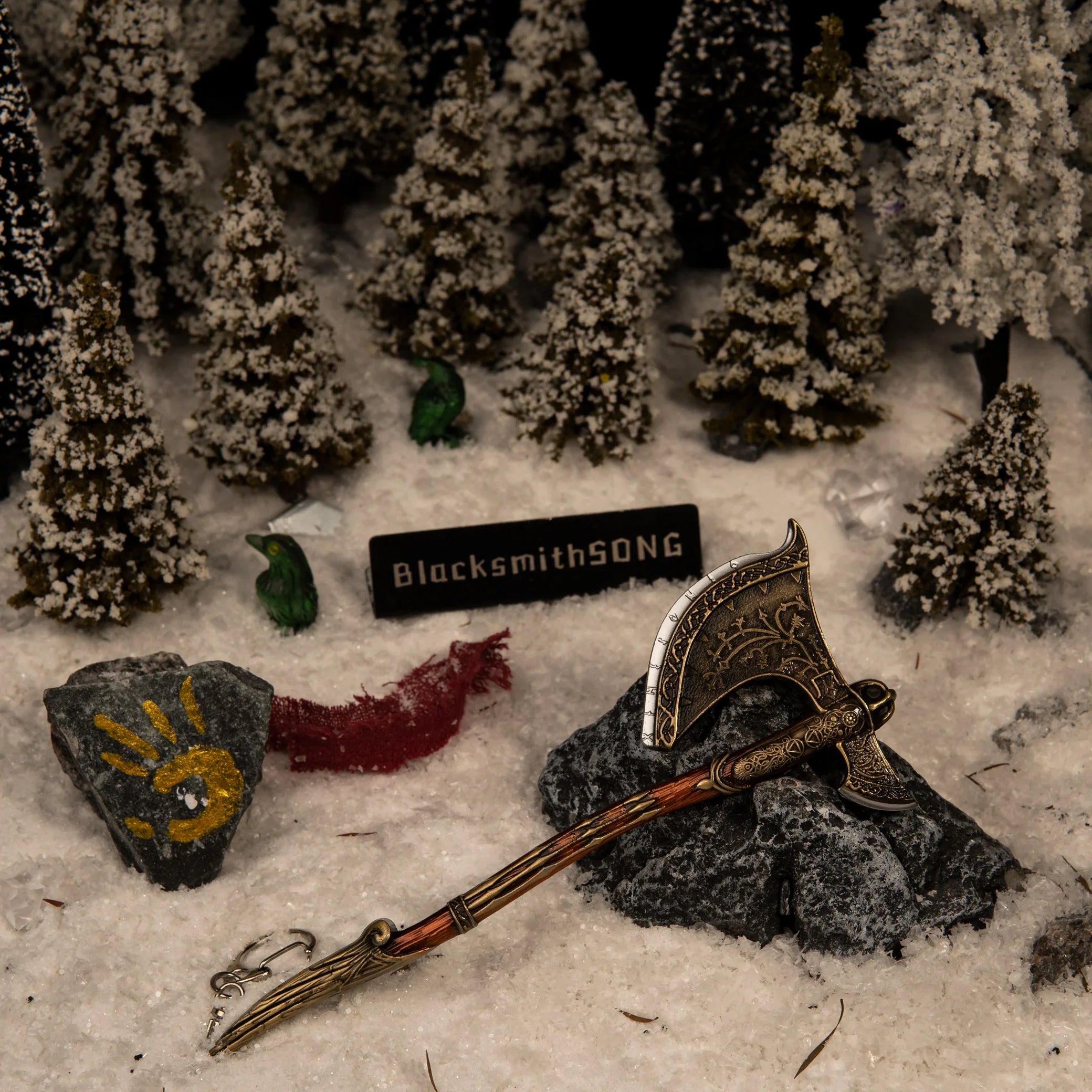 At BlacksmithSONG, we wanted to capture the axe not as it was found, but as it looked at the end of the journey—powerful, upgraded, and legendary.